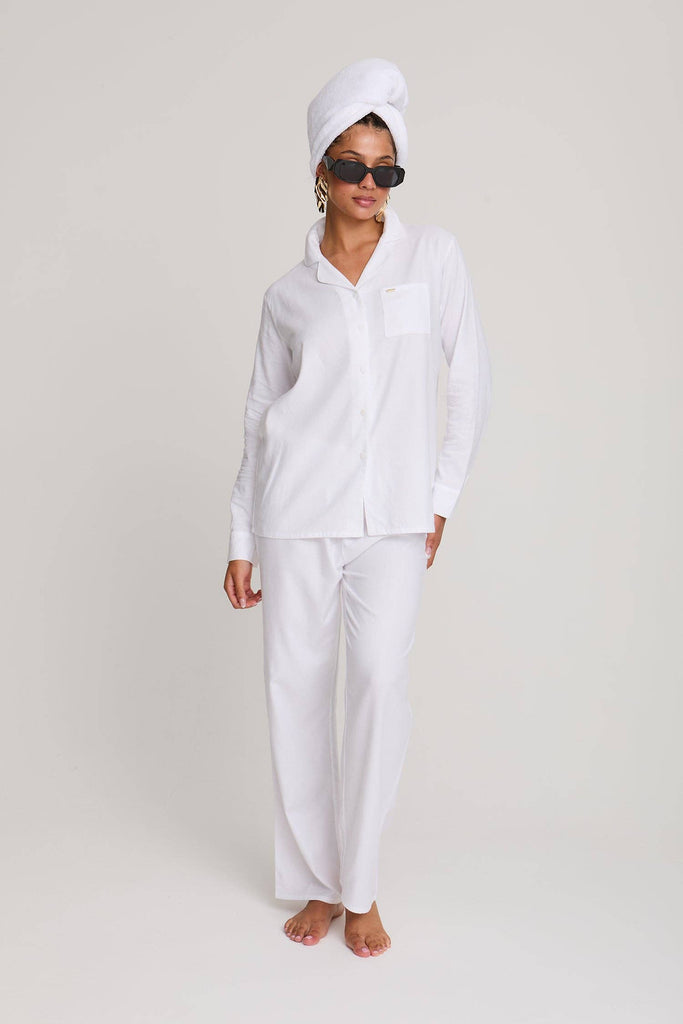 Cotton Modal Long Pajama Set in White: White / UK 10 / EU 38 / US 6