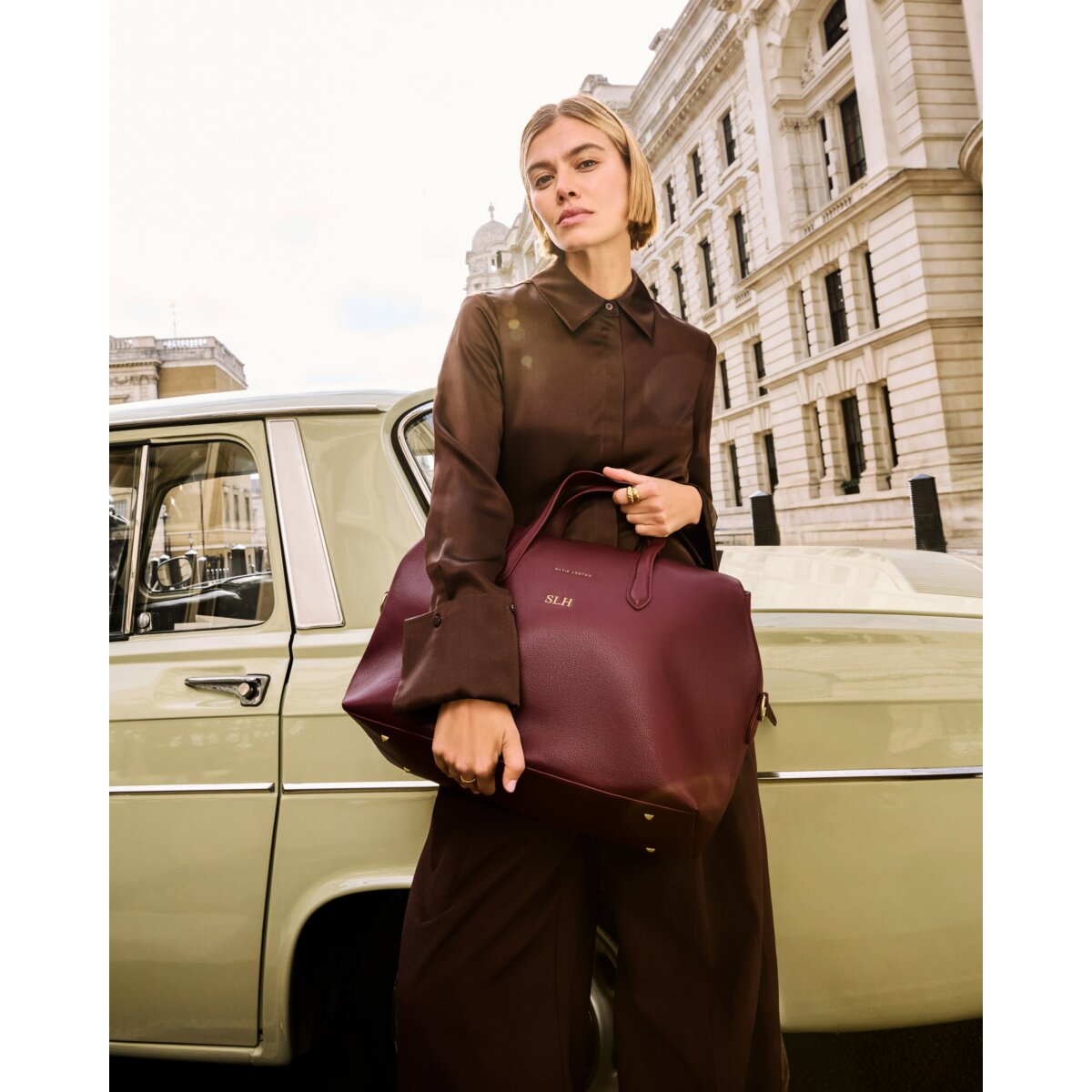 Crafted from smooth, pebble-vegan leather with a recycled polyester lining, this luxurious travel essential perfectly balances fashion and function. Designed with internal elasticated pockets for organisation, a luggage handle pass-through pocket for convenience, and fold-down sides to meet airline cabin size restrictions, it’s both practical and beautifully made.