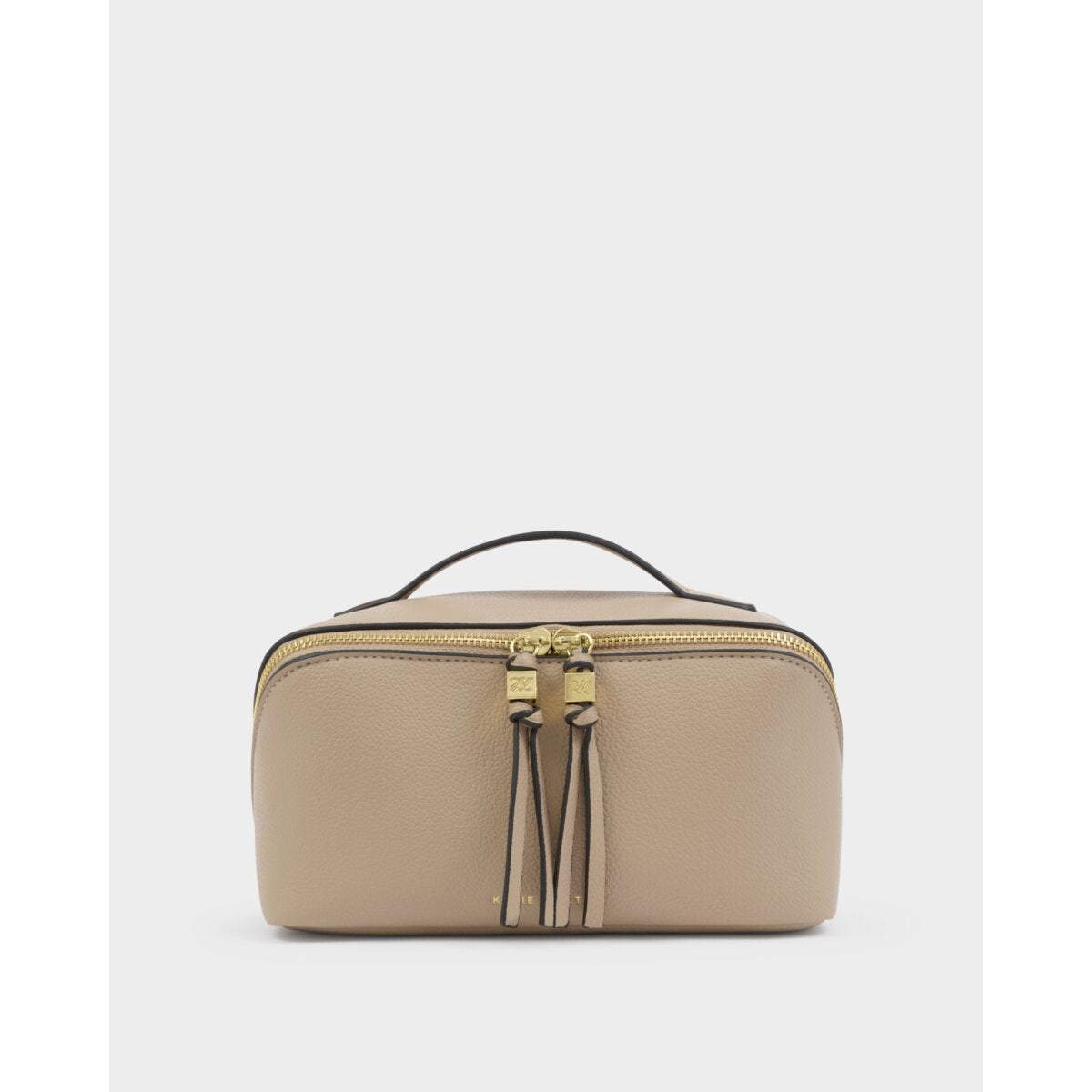 Crafted from smooth vegan leather with elegant gold-tone hardware, this stylish wash bag features internal elasticated compartments and a central divider to keep all your beauty essentials perfectly organised. Finished with the brand’s signature charm tassel zip pull, it blends sophistication with everyday functionality.