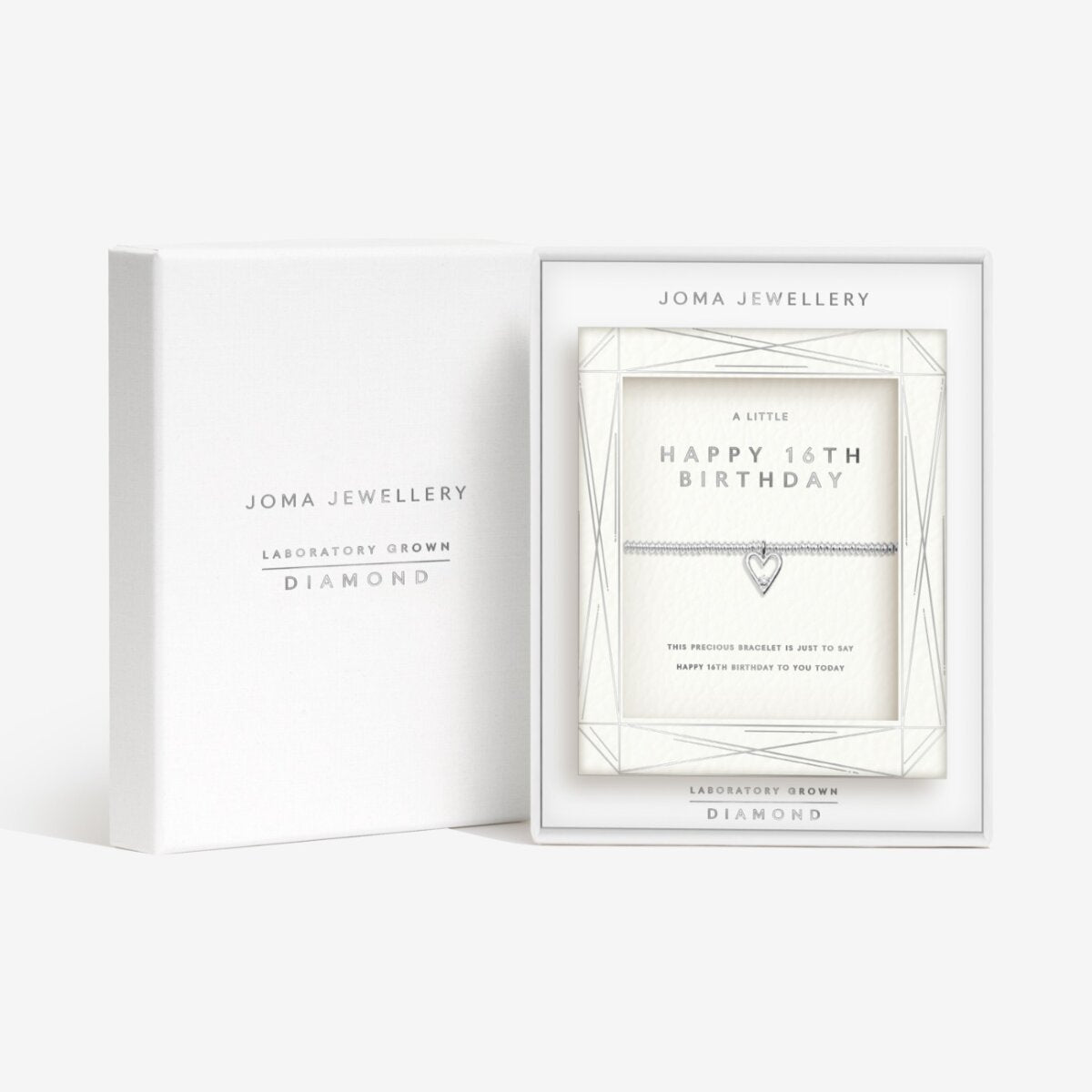 Joma Laboratory Grown Diamond A Little 'Happy 16th Birthday' Bracelet In Silver Plating