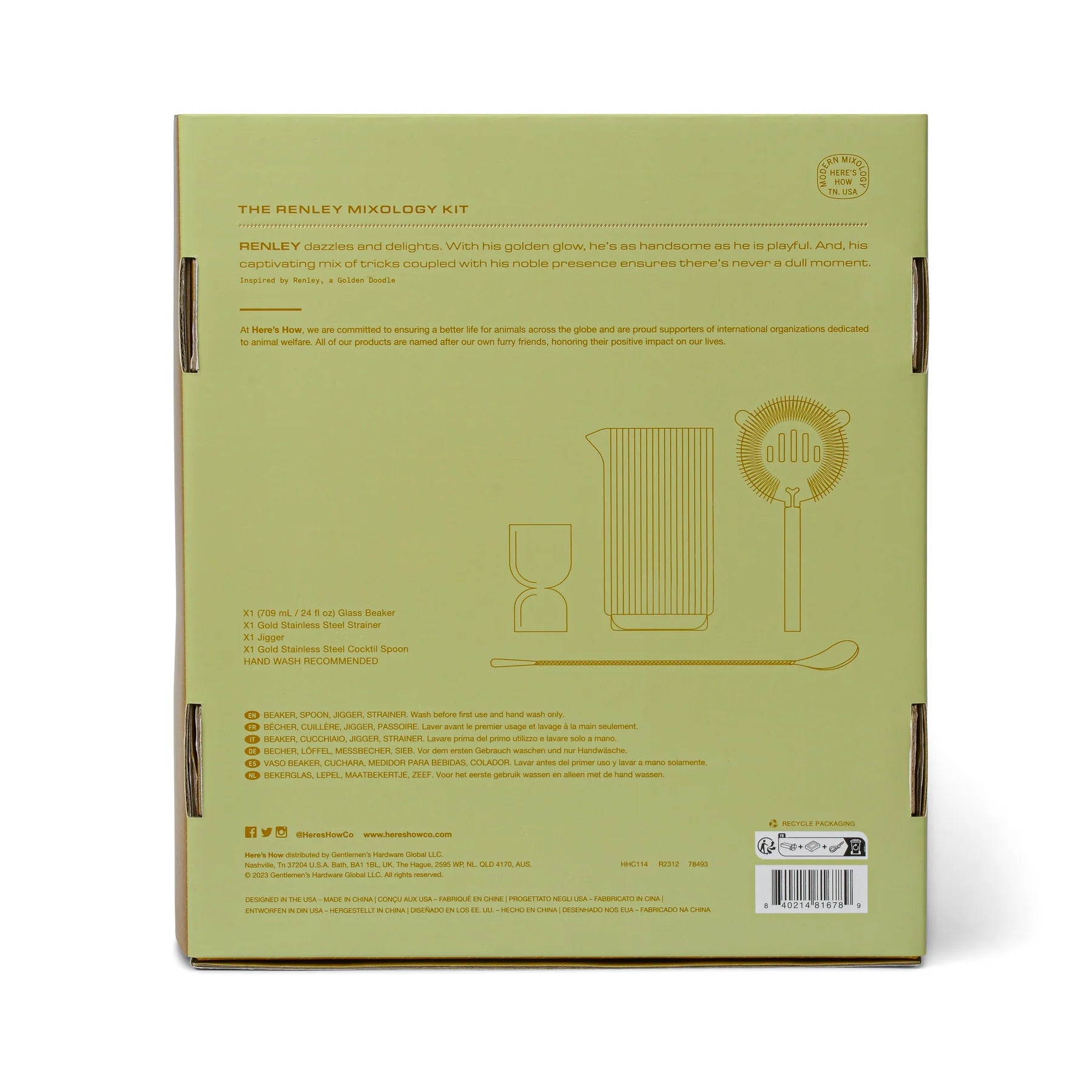 The Renley Bar Tool Set - Jigger, Strainer, Spoon, and Beaker