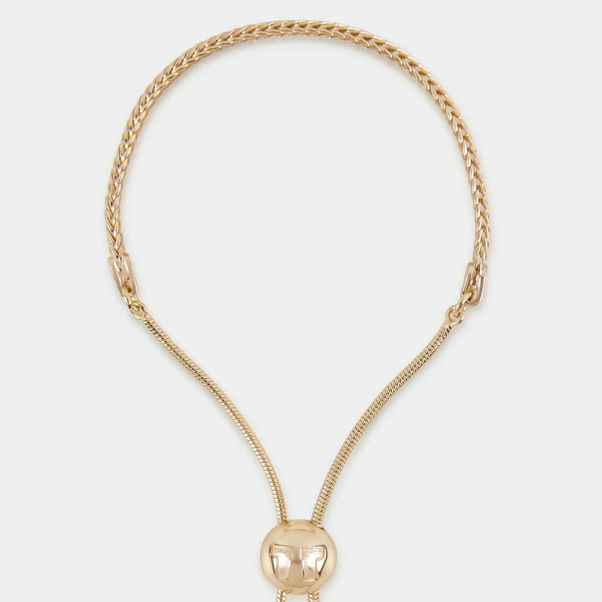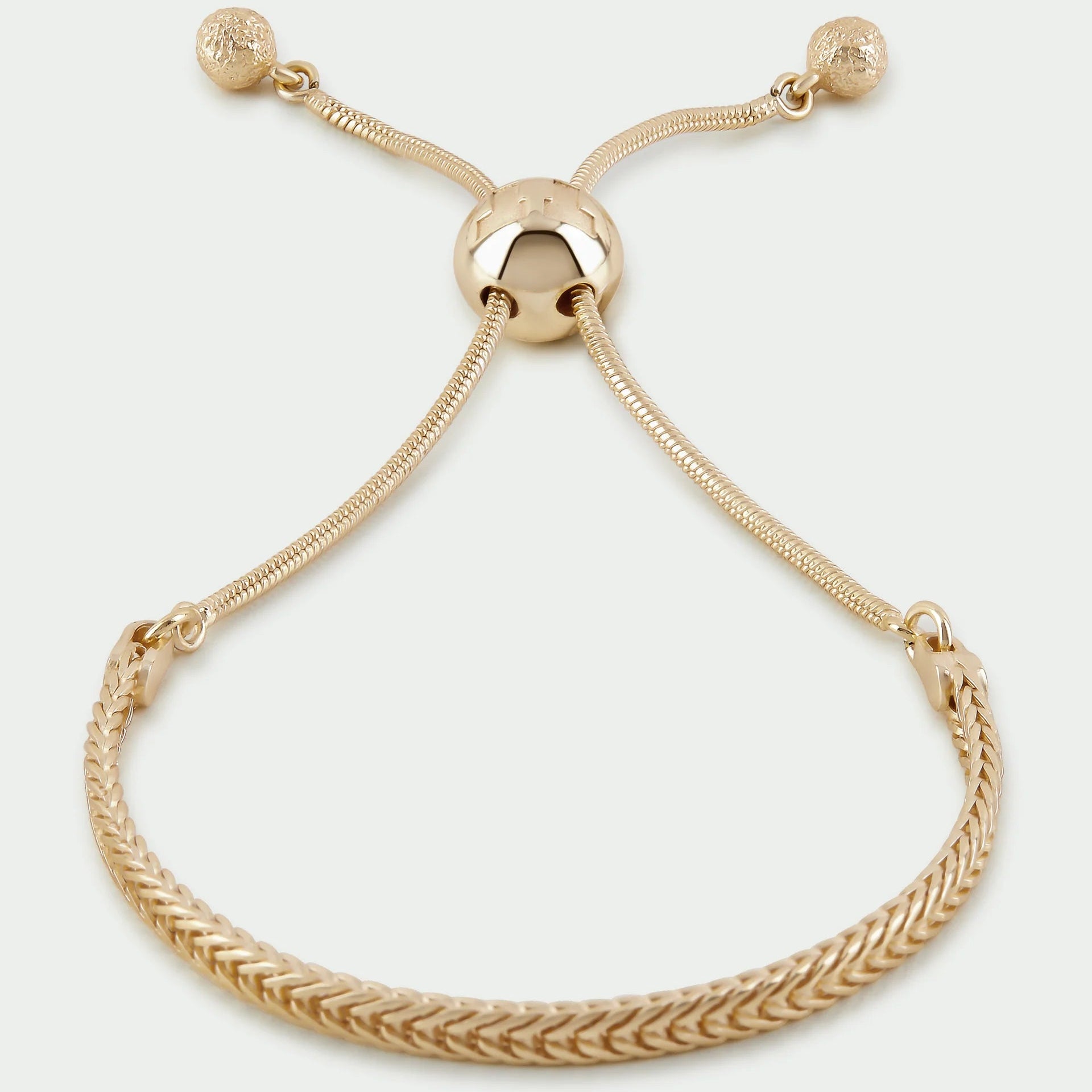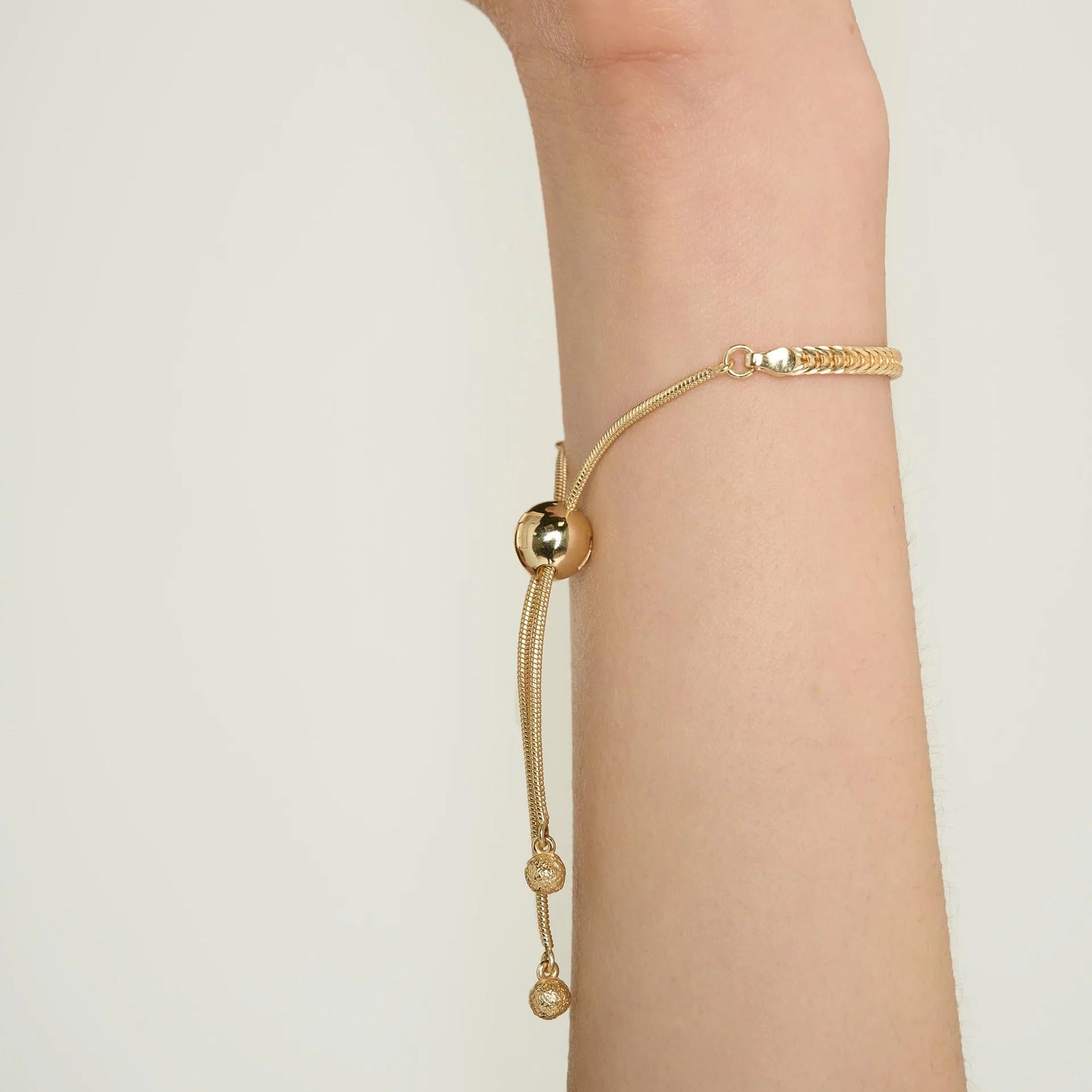 This woven gold bracelet blends texture with refined metallic detailing, creating a piece that feels both relaxed and elevated. Its adjustable slider bead allows you to tailor the fit comfortably, making it perfect for layering or wearing solo.