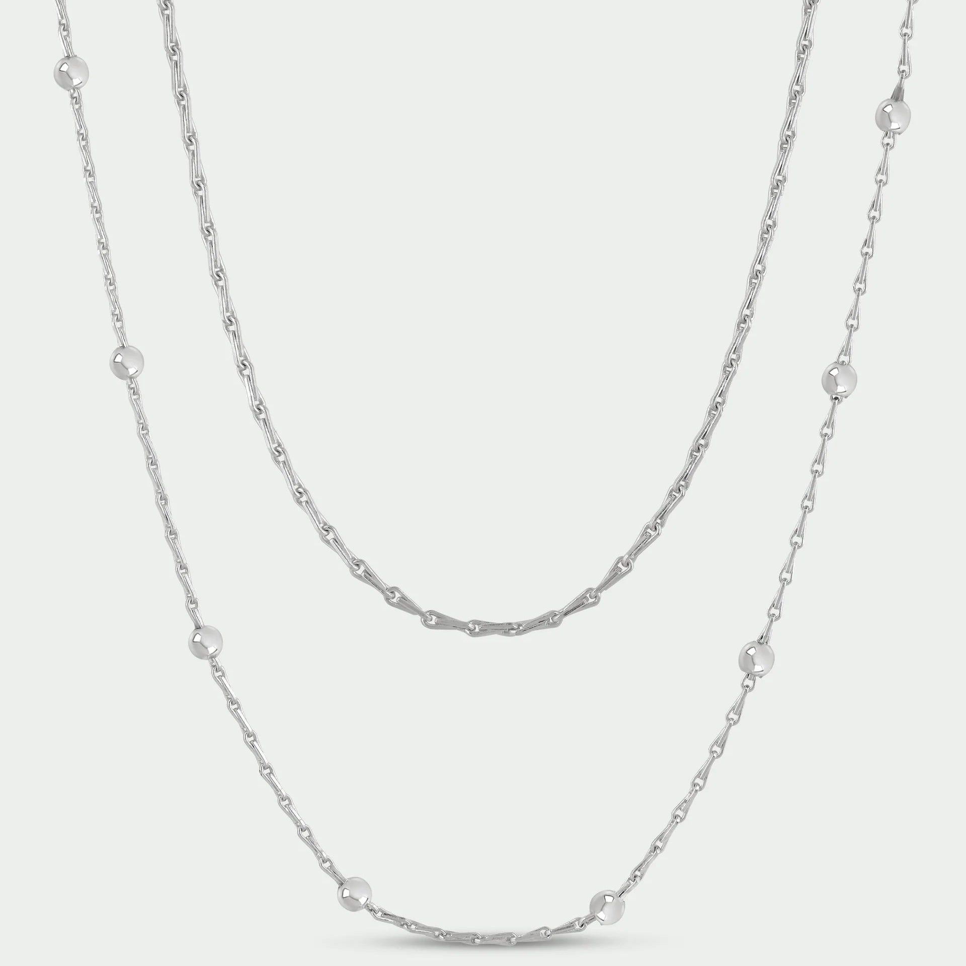 Designed with practicality in mind, the two chains clasp together to prevent tangling — giving you a flawless layered look without the fuss. Adjustable from 39cm to 43cm, it sits beautifully at the collarbone, making it ideal for everyday wear or elevating evening styling.