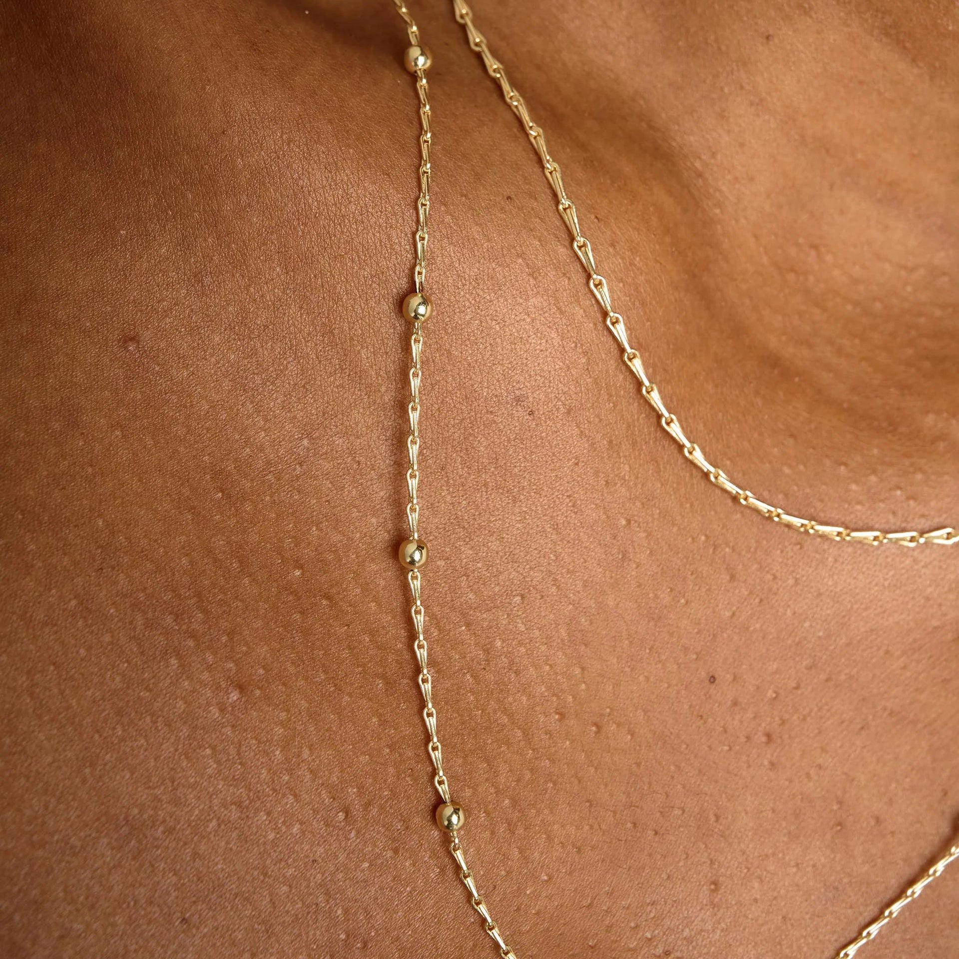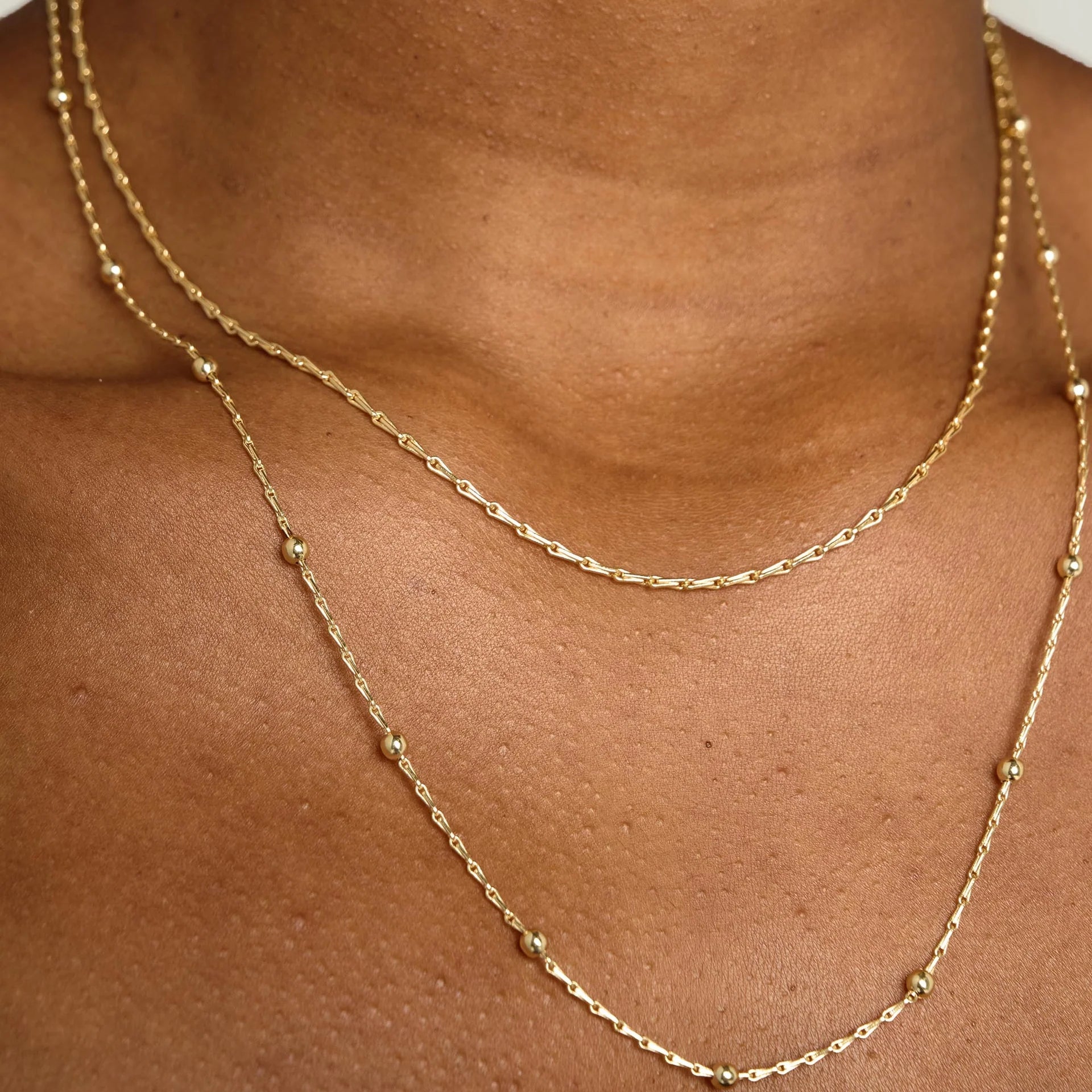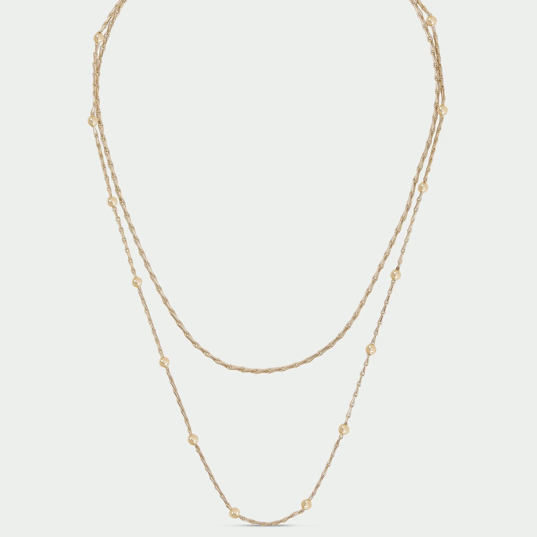 Effortlessly refined, the Tala Necklace by Tutti is a beautifully balanced double-chain design made for easy layering. Featuring a delicate fine rope chain paired with a subtle ball bead chain, this elegant gold necklace creates dimension and texture in one perfectly styled piece.