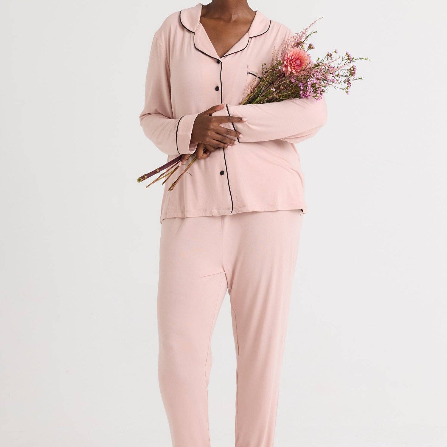 Designed with a timeless classic style, this elegant pyjama set combines comfort with understated luxury. Bamboo viscose is naturally breathable, hypoallergenic and antibacterial, making it ideal for sensitive skin while helping you stay fresh and comfortable throughout the night.
