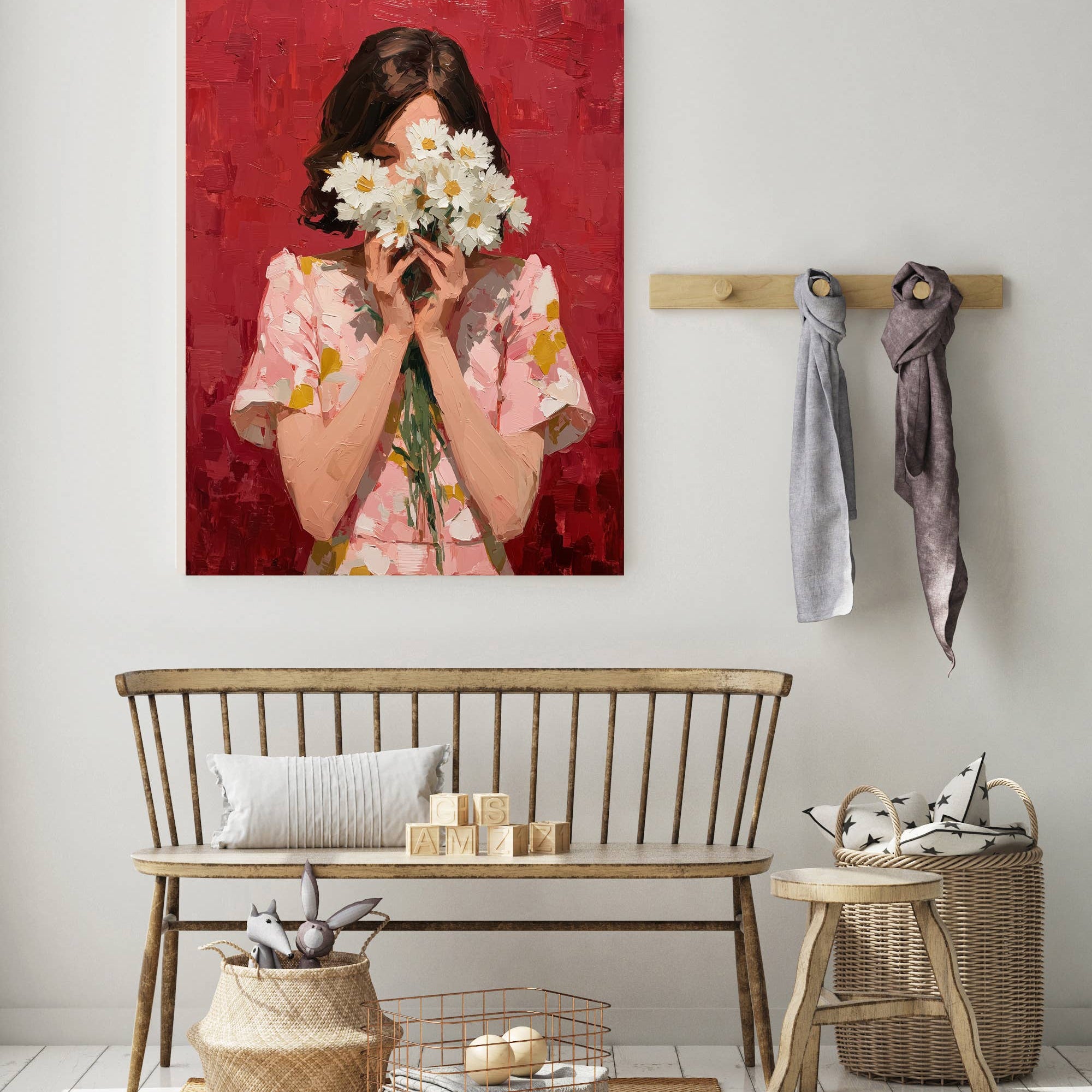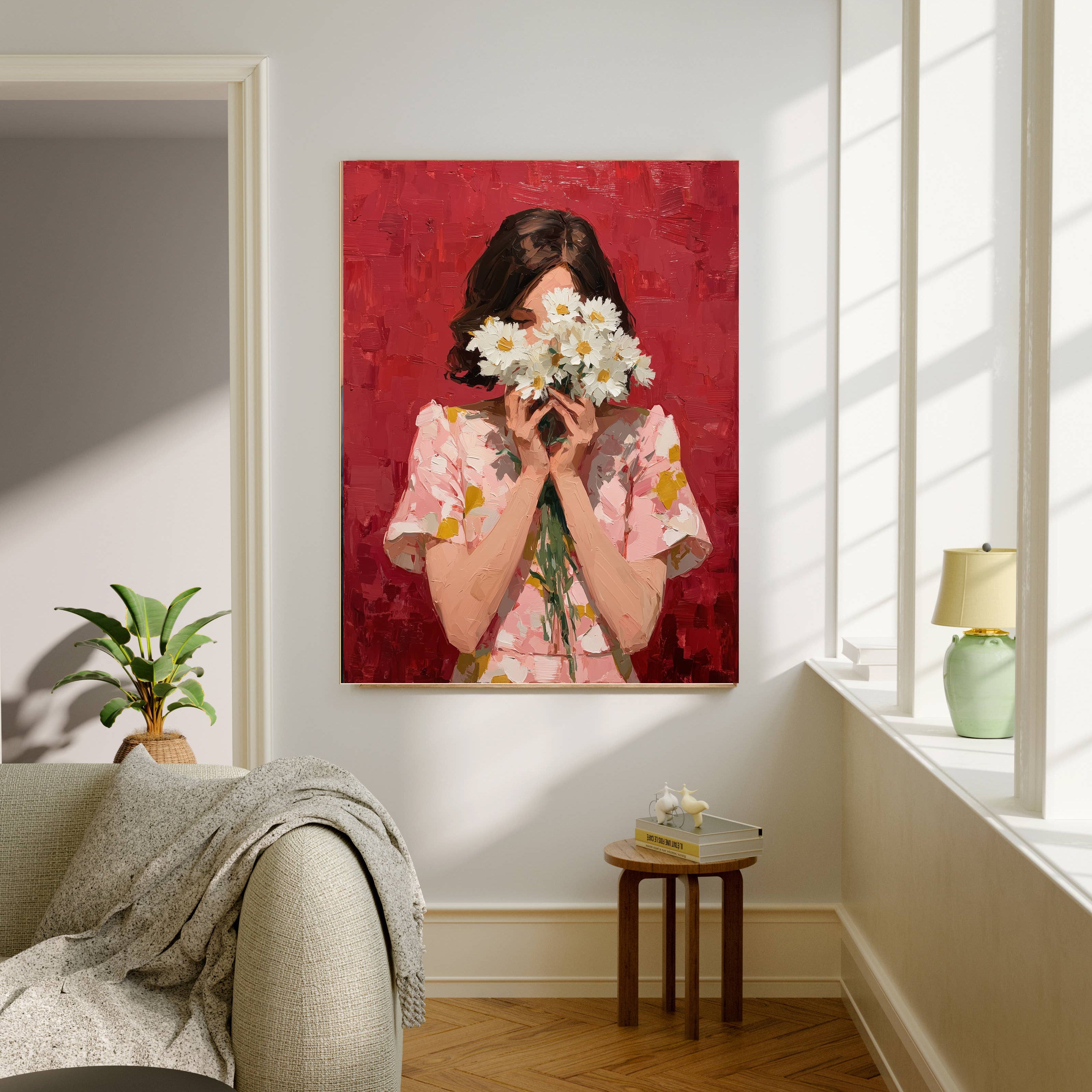 Impressionist Female Daisy Flower Portrait Art Print