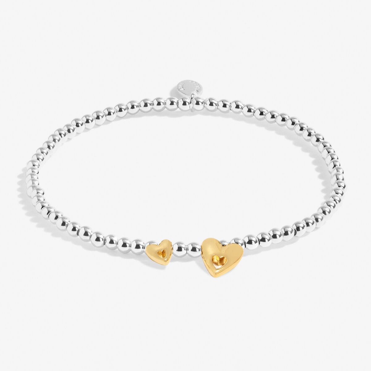 Threaded with shine-bright silver-plated beads and finished with two adorable heart charms in mixed silver and gold plating, this elegant bracelet captures the beauty of your unbreakable bond. Framed with a touching poem and presented in a luxury gift box, it’s ready to create a truly special gifting moment.