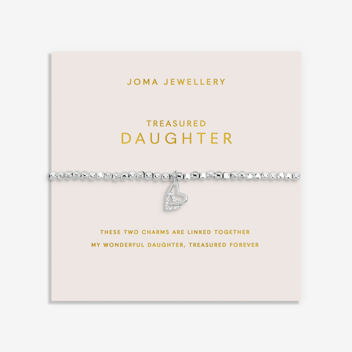 Celebrate meaningful connections with the beautifully crafted A Forever Yours 'Treasured Daughter' Bracelet. Designed in a timeless silver finish, this elegant stretch bracelet is a thoughtful token of appreciation for a special person.