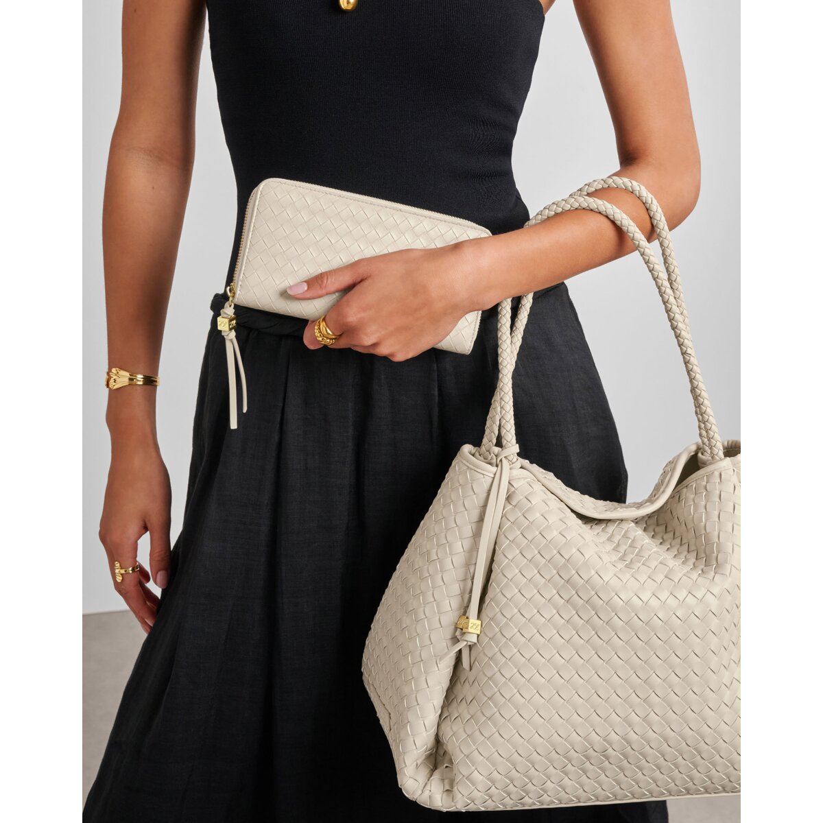 Elevate your everyday essentials with the Nova Woven Texture Large Purse. Crafted from beautifully textured woven vegan leather and finished with refined gold-tone hardware, this purse brings effortless sophistication to daily organisation.