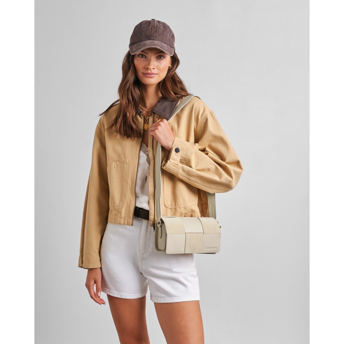 Inside, a back zip pocket keeps your valuables secure and organised, while the compact shape makes it ideal for hands-free styling on the go. Perfect for casual outings, city days, or elevating everyday looks.